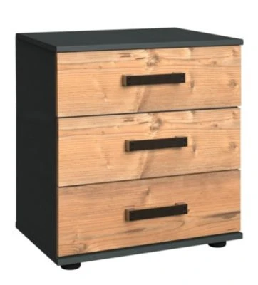 Nachtkonsole Stockholm modernes Design Formschöner und praktischer Nachttisch. Die Nachtkonsole lässt sich hervorragend kombinieren – die Schubladen bieten Ihnen ausreichend Stauraum. Farbe: graphit / Edeltanne Material: Faserplatte mit pflegeleichter Kunststoffoberfläche Ausstattung / Stellmaße (ca.Maße): – mit 3 Schubkasten auf Metalllaufleisten – schwarze Kunststoffgriffe – B/T/H: 52 cm / 38 cm / 58 cm