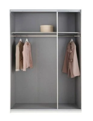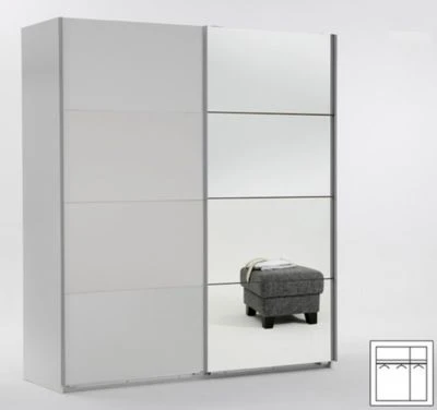 Schwebetürenschrank Easy Plus praktisch & modern Moderner 2-türiger Kleiderschrank mit Schwebetüren. Die Front des Schrankes besteht aus 8 Einzelelementen, die beliebig positioniert werden können. Dieser übersichtliche Schrank bietet Ihnen sehr viel Stauraum und lässt sich hervorragend kombinieren. Farbe: weiß / Spiegel Material: Faserplatte mit pflegeleichter Kunststoffoberfläche Ausstattung / Abmessungen (ca. Maße): – Innendekor leinengrau – Griffleisten aus Metall – mit 4 Spigelelementen und 4 Holzelementen, Anordnung beliebig – B/T/H: 135 cm / 65 cm / 210 cm